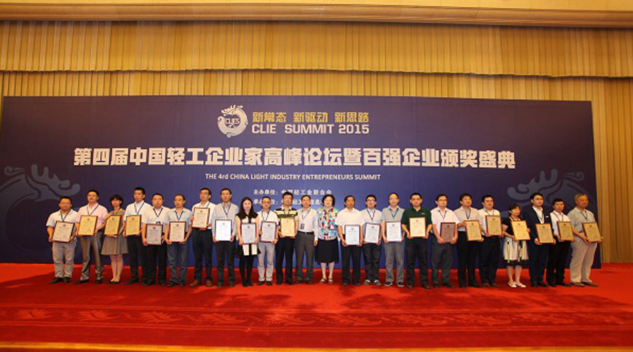 Chinese light entrepreneurs forum and 100 awards ceremony is an important annual event China light industry association. The current session of the "new normal, new drivers and new ideas" as the theme, the national development and Reform Commission, the Ministry of Commerce, the SASAC, the State Statistical Bureau relevant leaders attended the meeting, on the "The Belt and Road" strategy, Chinese manufacturing, "Internet plus" and other topics focus on interpretation, and the list of enterprises in recognition.