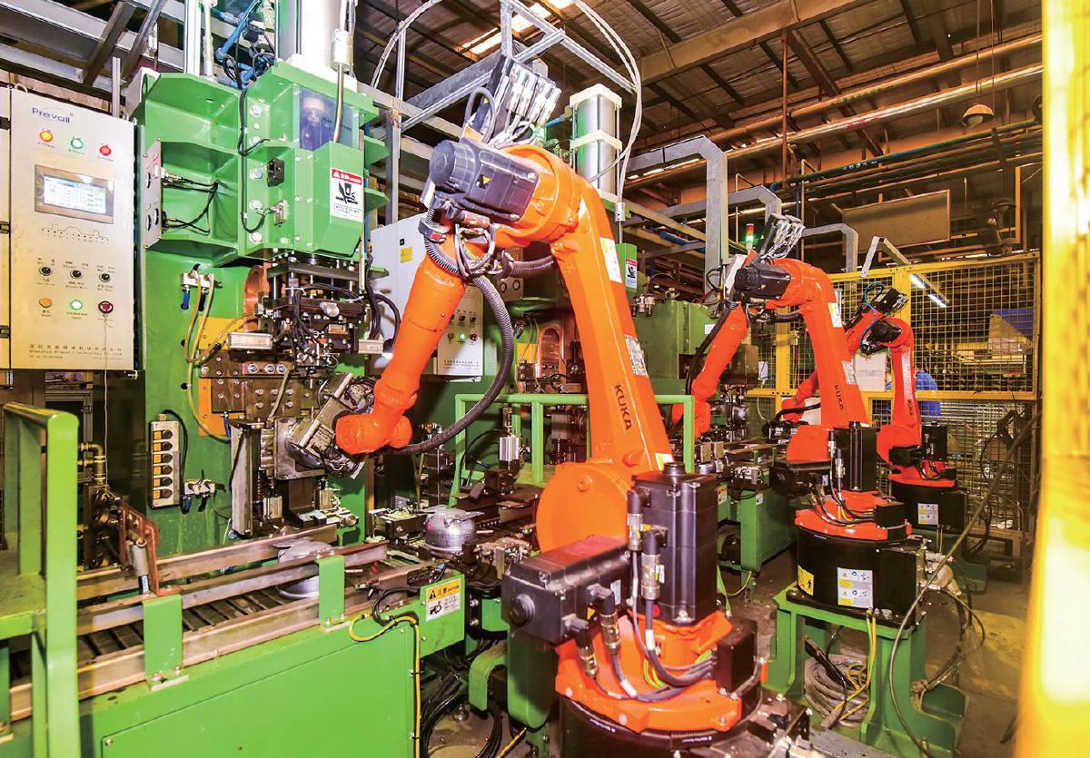 28日,東貝集團黃金山工業(yè)園內,壓縮機生產(chǎn)線上的機械臂正在作業(yè)。春節(jié)過后,該集團加工車間氣缸座粗加工生產(chǎn)線、BTB生產(chǎn)線高速運轉,維修中心對裝配、加工、殼體車間共計50個機臺設備進行針對性的保全,排除了觸電、機械傷害等危險因素,保證節(jié)后全面恢復生產(chǎn)
