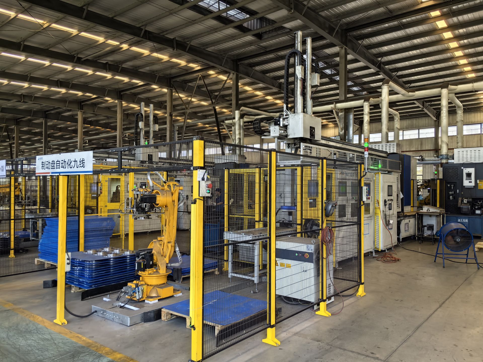8月19日,在東貝鑄造剎車盤項(xiàng)目生產(chǎn)車間,自動(dòng)化的生產(chǎn)線高速運(yùn)轉(zhuǎn),機(jī)器人伸展手臂,抓取原料后投放到指定位置進(jìn)行工藝處理。